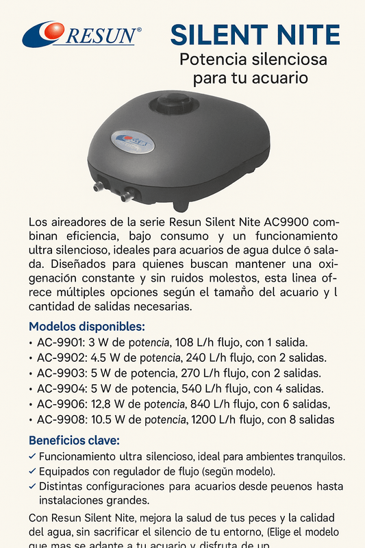 Aireadores Resun Silent Nite – Potencia silenciosa para tu acuario