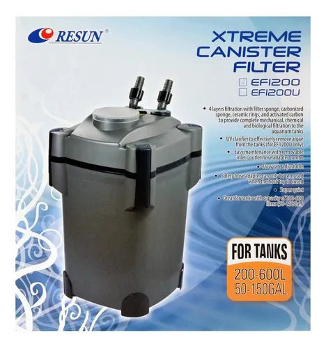 EF-1200UV - Filtro Canister Resun con Luz UV para Acuarios de hasta 500 Litros
